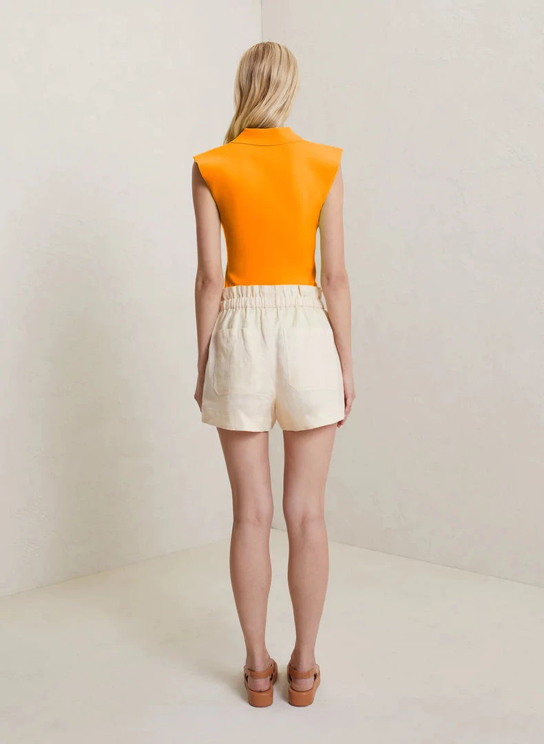 The Billy Short is crafted from soft, lightweight linen in a creamy hue. This thigh-skimming silhouette features an elasticized drawstring waist with frilled detailing and slit pockets.