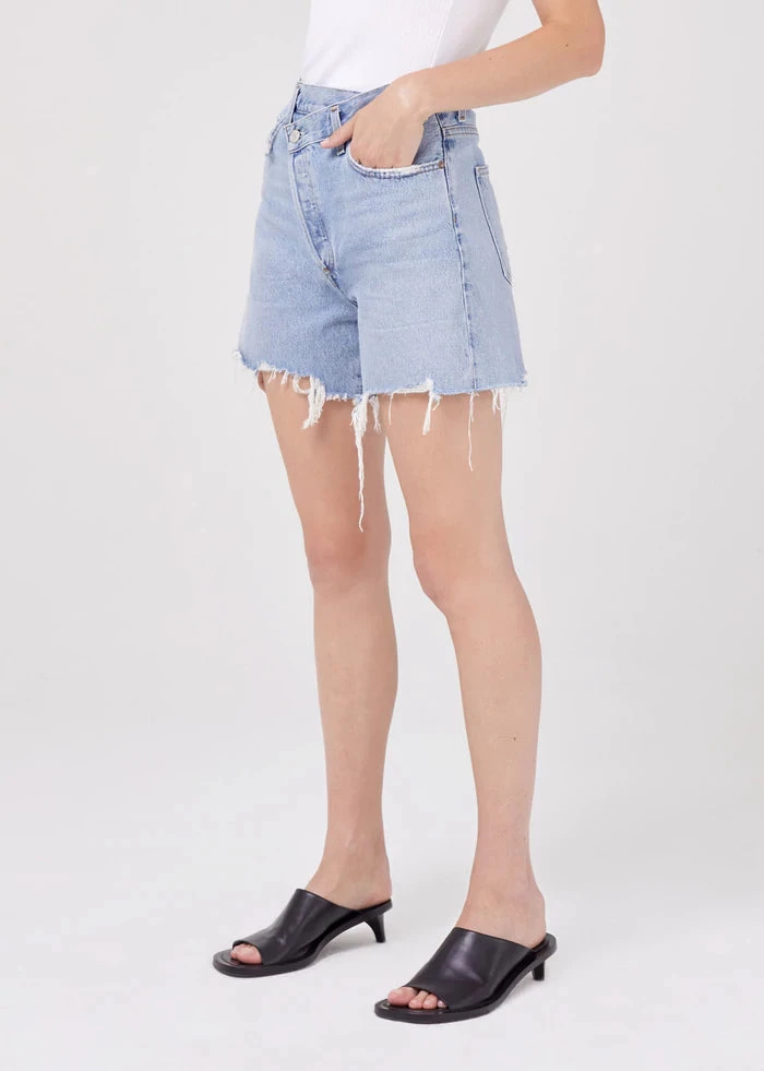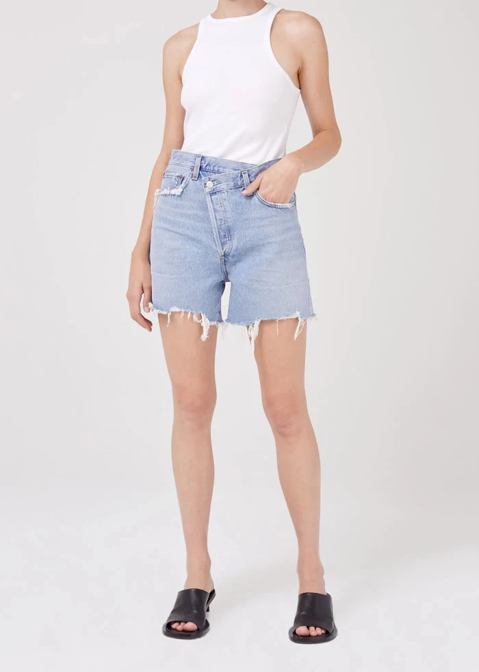 Modeled after our best-selling jean, the Criss Cross shorts offer the same unexpected criss cross button front detail, making them the perfect pair to refresh your denim wardrobe. This new short pairs best with your favorite vintage t-shirt or a simple tank.