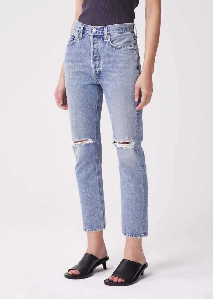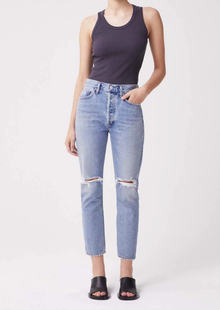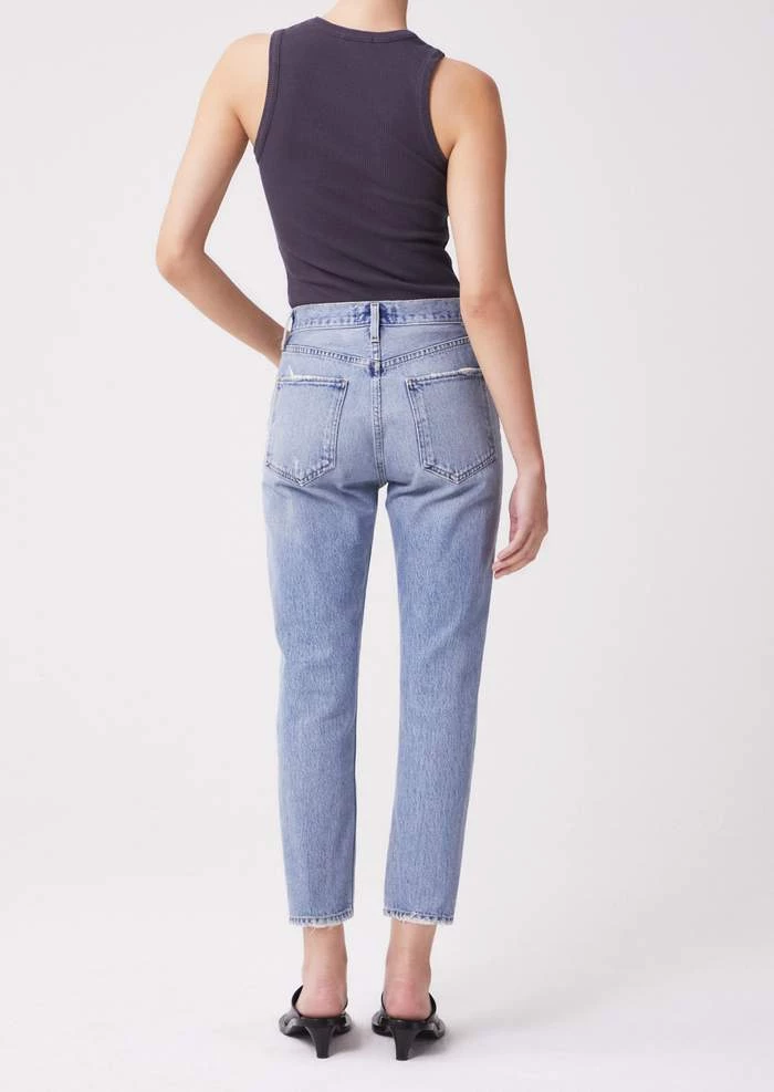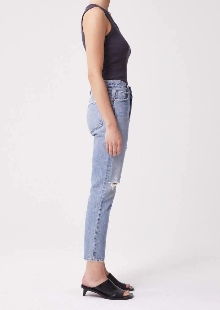 Agolde’s signature straight leg. With a better-than-vintage aesthetic, the Riley is an iconic brand favorite. The flattering high-rise and straight leg hold close to the body for a universally loved look. A cropped inseam makes these easy to style with anything from sandals to a heeled boot.