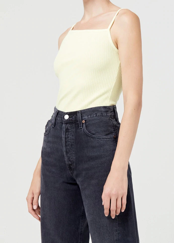 Simple yet striking, this asymmetrical tank is crafted from a signature ribbed material with a super soft hand and sleek fit. Tuck yours into denim to complete the look.