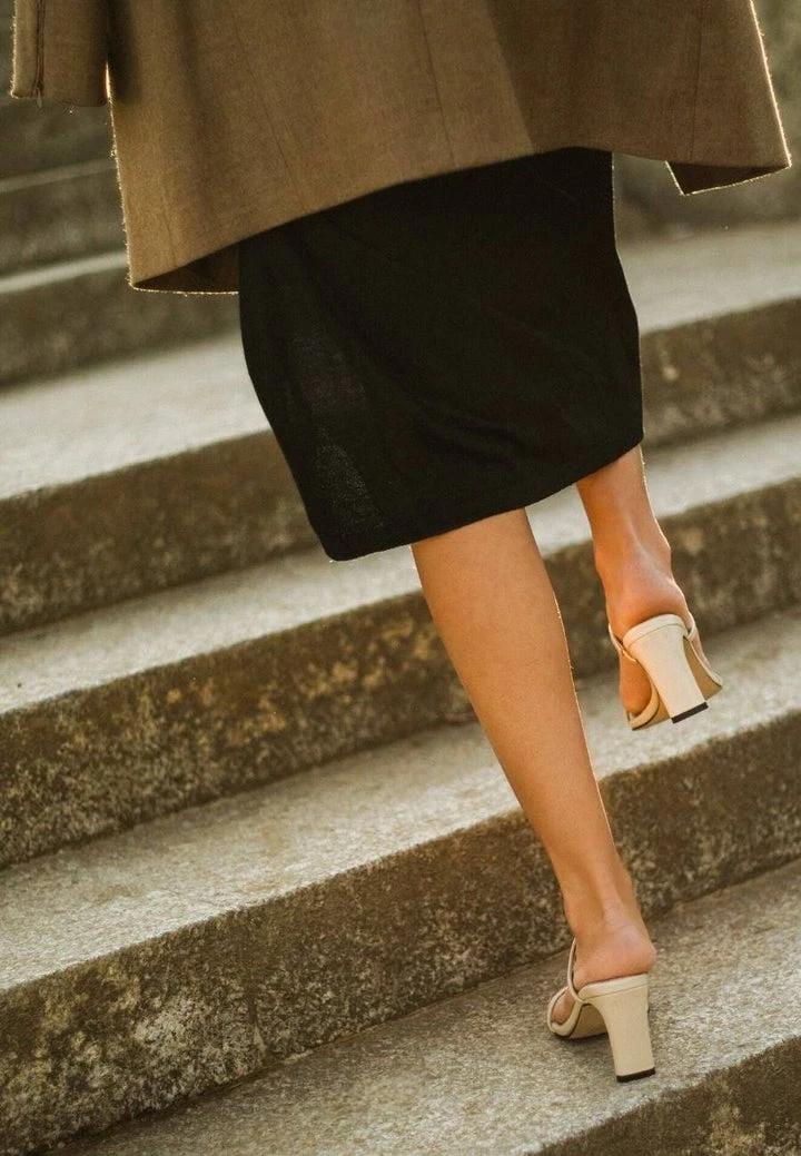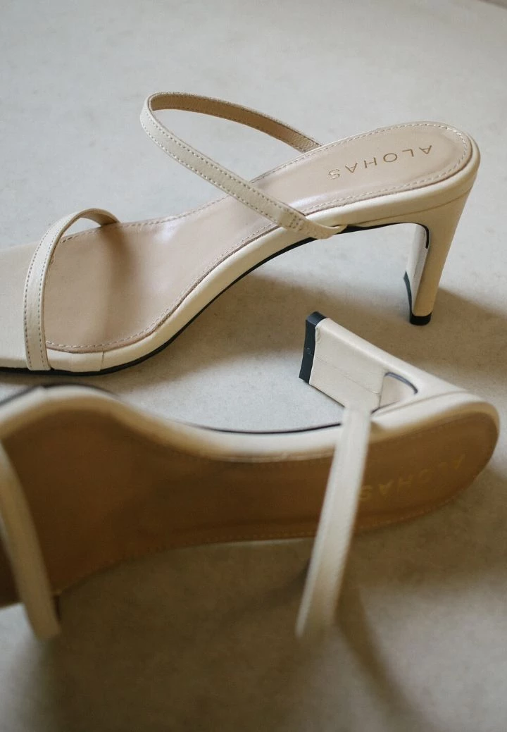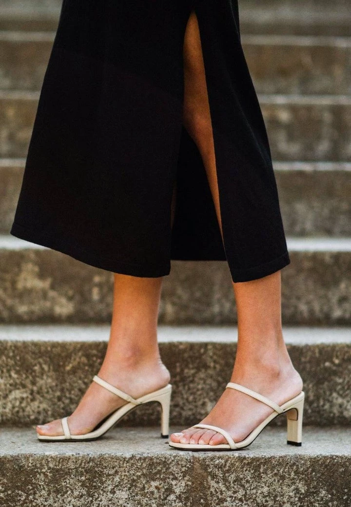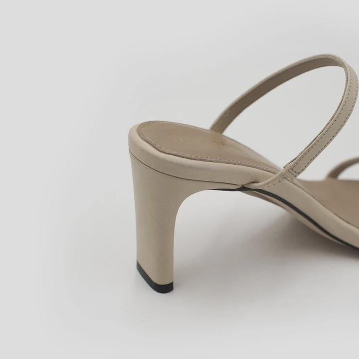 Channel your inner movie star with the Cannes Beige. These beige sandal heels feature a thin but wide horizontal heel for extra flattery and comfort. Their sleek and minimalistic design is defined by two types of straps: one at the front to support the toe area, and one between the ankle and the instep. Square toe and 8cm heel and a square toe, the perfect combination.