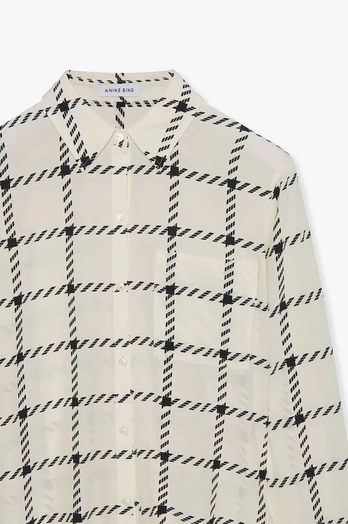 The Aspen Shirt is a relaxed, pajama-style button up made from a lightweight rayon-viscose blend in a cream and black heritage-check print that transitions effortlessly from day to night.