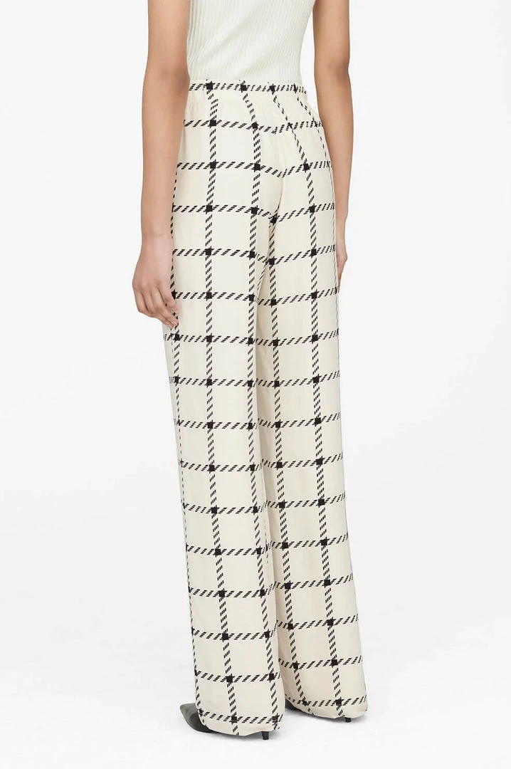 An elevated take on loungewear, the Owen Pant’s relaxed, wide-leg silhouette features an easy pull-on construction with a mid-rise elasticated waistband. It’s made from a versatile rayon-viscose fabrication in a cream and black heritage-check print that transitions effortlessly from day to night.