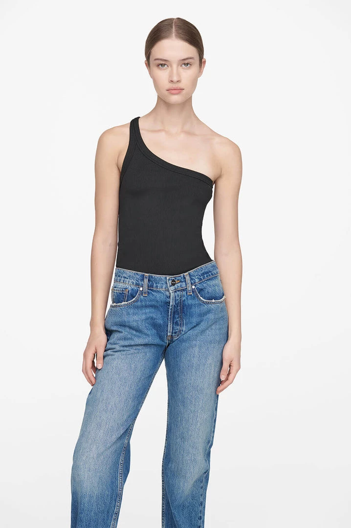 The Ren Top is a new elevated basic constructed from our signature nylon-spandex rib fabrication that fits close to the body for easy tucking and layering. This day-to-night tank features a one-shoulder asymmetrical silhouette, plunging low at the front and back neckline.