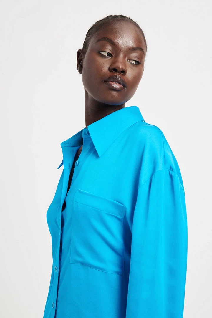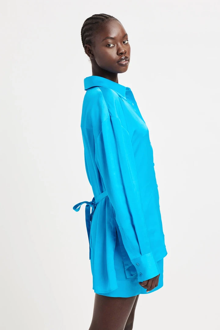The CHRISSY button-down shirt is an elevated closet staple. Style it open as a light layer or closed on its own, featuring a tie at the back so you can cinch your waist. The CHRISSY is made with our new Recycled ALT-SILK fabric.
