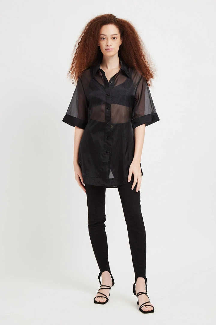 The TANA button-down is the ultimate transitional piece for your warm weather wardrobe. Layer it over your favorite looks on chillier evenings or over a bathing suit when heading to the beach. Made with our breezy, lightweight organza fabric.Â