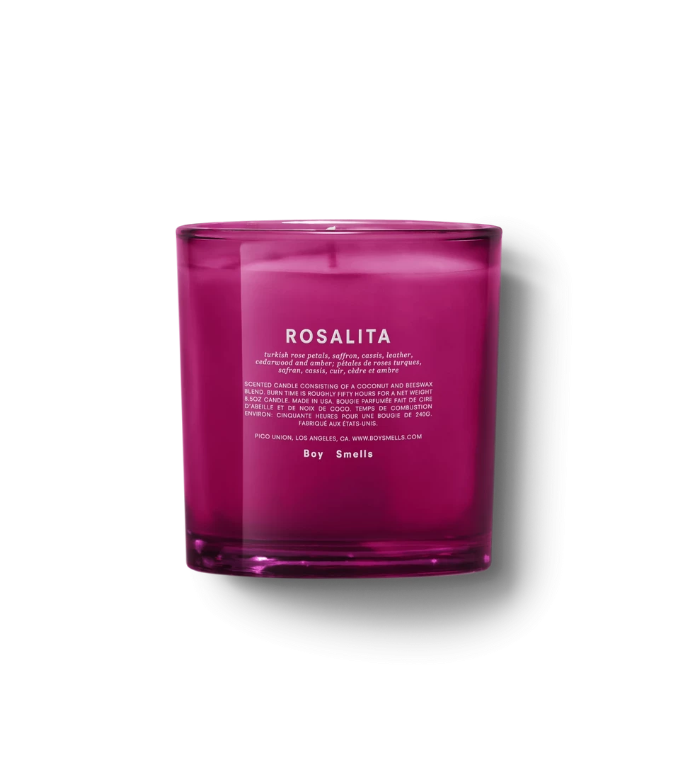 A limited edition re-release scented candle, ROSALITA rounds out the garden of this spring candle collection, intertwining notes of Spanish cassis, saffron and leather with the sweet sting of Turkish rose petals. Joined by additional notes of amber and cedarwood, creating a candle scent that is somehow both a floral and woody escape to a modern Spanish grove. A previous vegan scented candles best seller.