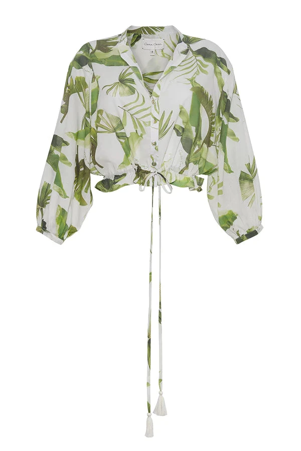 Cut from airy cotton voile, the Perrin shirt has an easy, oversized silhouette that gathers with drawstring ties at the cropped hem.