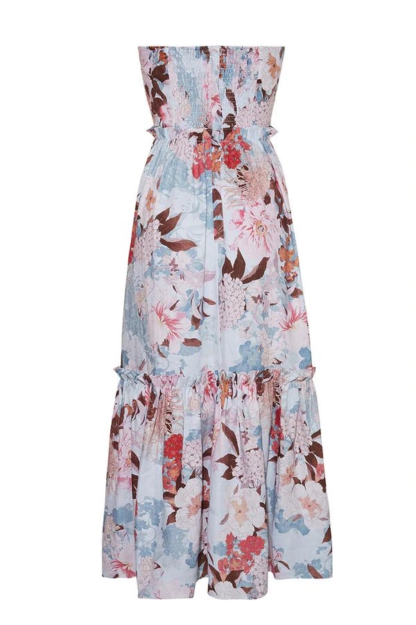 An evolution of our most-loved Blue Hill Dress, the Torres features the same dreamy ruffle tier skirt but with a strapless bodice – a request made by many friends. The structured top cuts an elegant silhouette and the Japanese floral print feels fresh for all seasons.Â