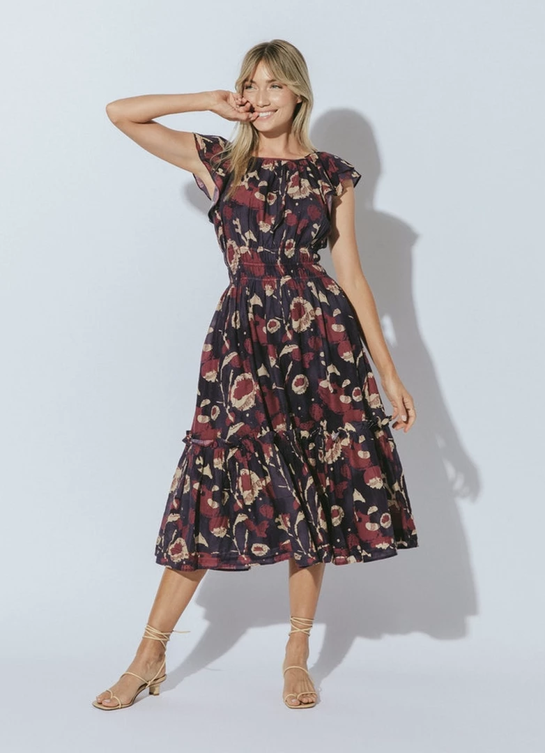 Made of 100% GOTS certified organic cotton, theĀ Ellison Midi DressĀ inĀ Abstract PrintĀ is feminine, flirty and the perfect dress to take you from morning to night. Dress down with a pair of white sneakers or throw on a pairĀ of strappy heels for date night!