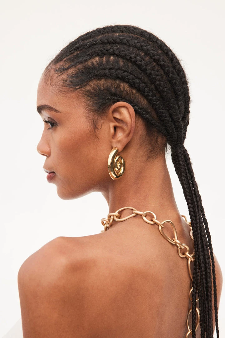 The Ira is a sculptural set of earrings – tubular, golden and a design that spirals inward. They feature our signature double ball backing and are lighter than meets the eye.Â