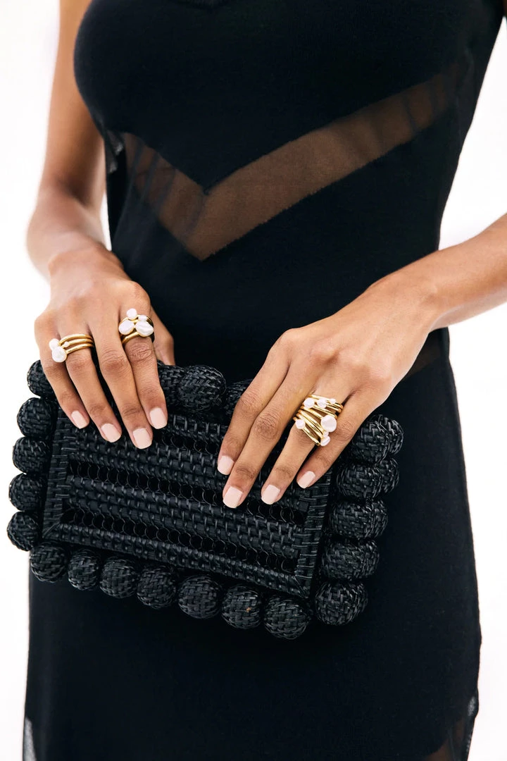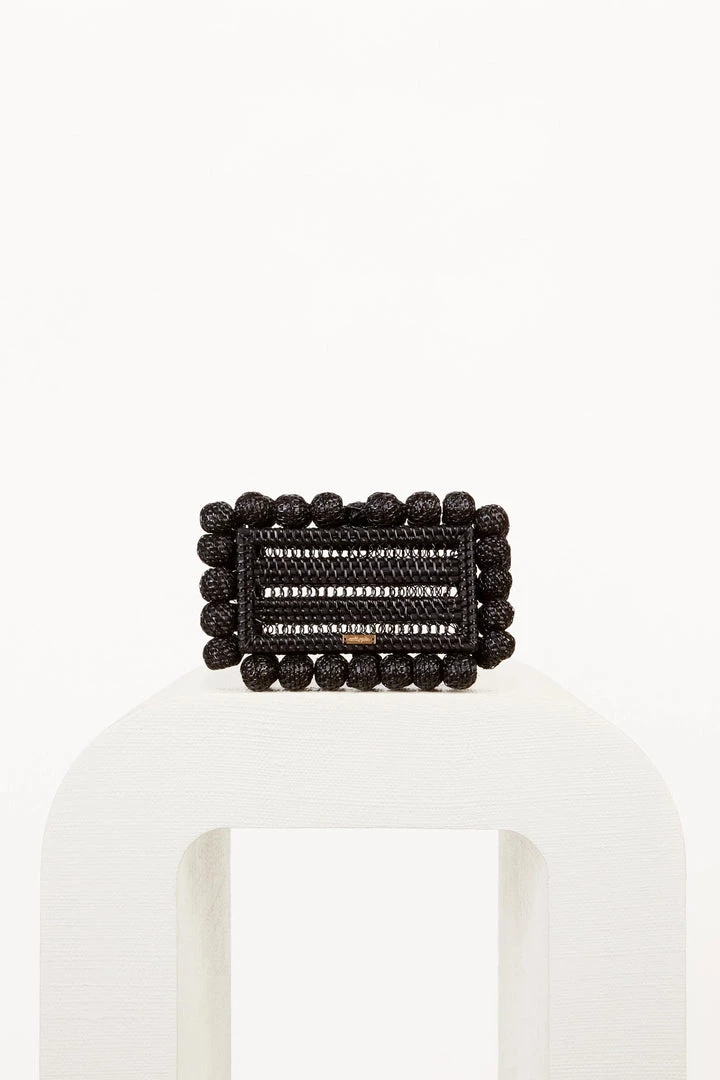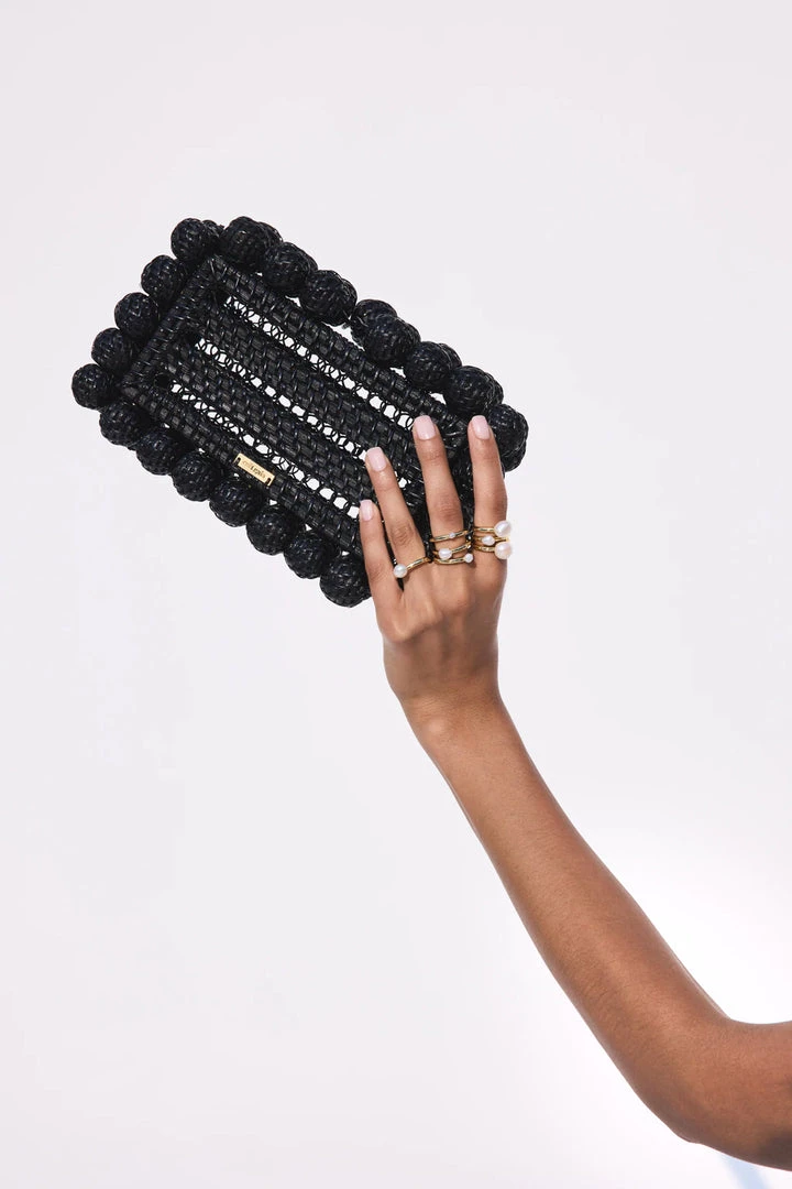 The Eos Clutch has rattan beads surrounding the edges of the bag for a unique Gaia touch. Crafted from a lightweight rattan, these unlined bags are just the right size to fit your essentials. Our classic signature is printed in gold on one side of the clutch. An innovative bead closure secures at the top for easy access.Â