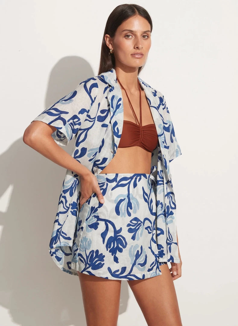Equally fun as it is functional, the Eridani Skort is a FAITHFULL signature and for good reason. Cut from Certified Linen – EUROPEAN FLAX® & OEKO-TEX100® fabrication and hand-printed in the vibrant Ensola Blue Floral Print, this design features a faux wrap style front with side waist tie detailing. Lined throughout and easy wearing with a side seam zip, we love the Eridani paired back with the Charlita Shirt Dress for an effortlessly fresh ensemble.