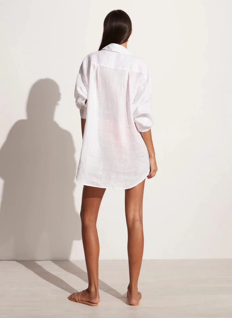 Inspired by sun-drenched vacations along the coast of Careyes, the Tortuga Shirt Dress has been hand-dyed in a classic White making it a wardrobe staple for seasons to come. Perfect for layering with swim, this style features a relaxed, long line silhouette and white marbled buttons. Cut from our Linen – EUROPEAN FLAX® & OEKO-TEX100® Certified fabrication, this piece is effortlessly elevated as well as gentle on the environment.