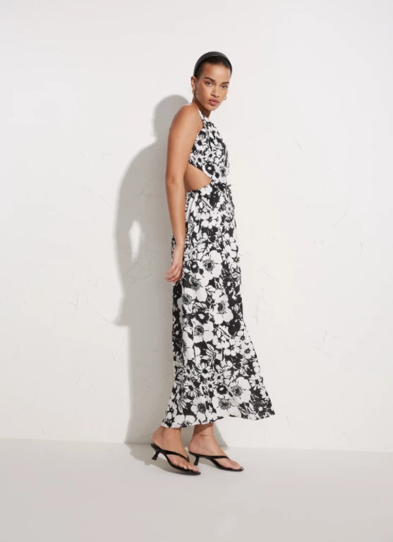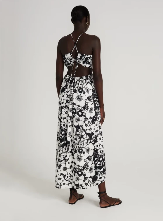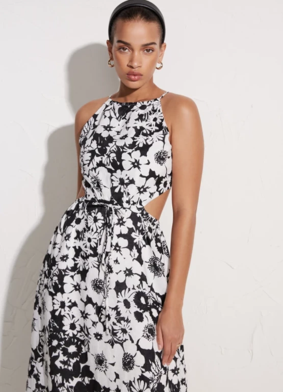 A highlight style of the season, the La Piedra Midi Dress features a flattering high neck with halter straps, cross over detailing and beautiful open back. Balanced with an elasticated waist a floaty lined midi length skirt, the La Piedra speaks to those who value both style and comfort. Hand printed in our exclusive, vintage inspired Caronia Floral print, this garment has been proudly crafted from certified linen fabrication and boasts breathability.