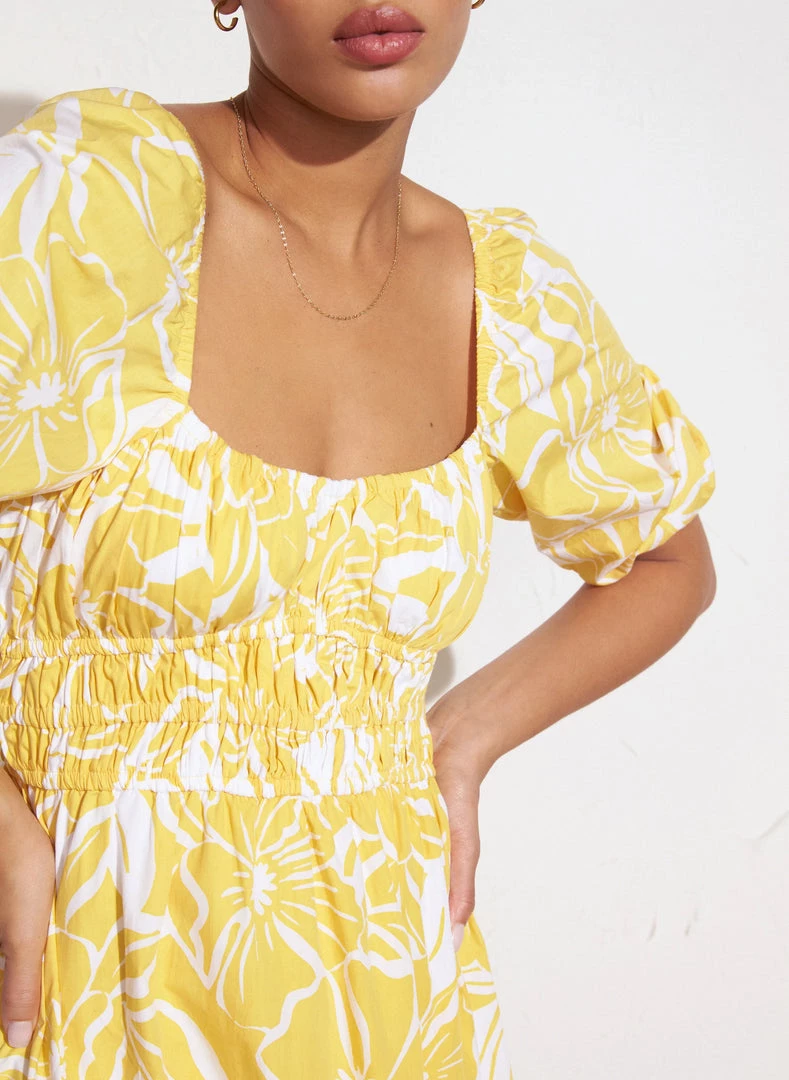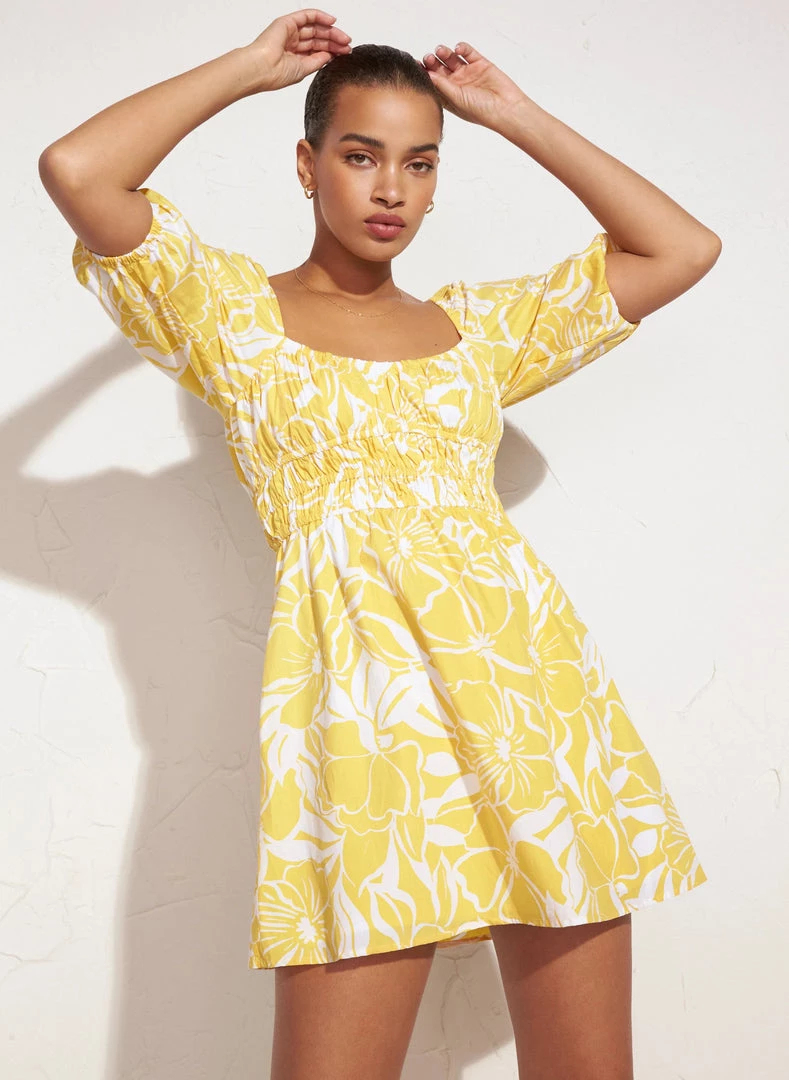 This structured mini in hand-printed Marigold Marsa Floral Print will be on high rotation for seasons to come. With gathered detailing on the bust, delicate elasticated puff sleeves and elasticated seams in both the waistline and bodice, the Marinelli Mini Dress is equally flattering as it is easy wearing. Cut from a crisp Cotton Poplin – OEKO-TEX100® Certified.