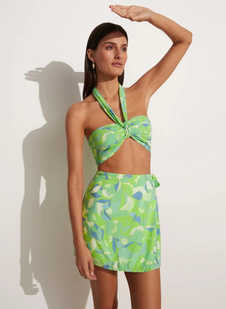 A statement making silhouette from the Islas collection is our bandeau style Refaeli Top. Proudly cut from an environmentally gentle Rayon Light – 100% LENZINGâ„¢ ECOVEROâ„¢ Certified fabrication, this style has been hand-printed and hand-dyed in our playful Galarosa Print. The Refaeli Top offers a knot front detail, adjustable halter neck ties and a shirred back.Â