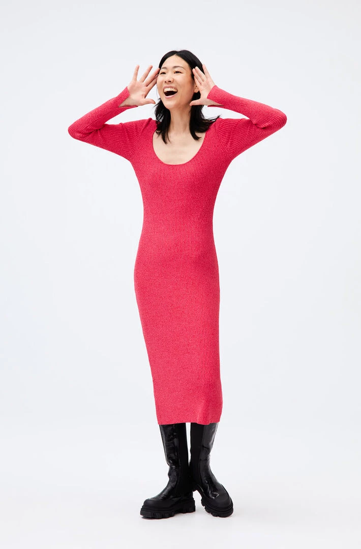 The perfect day-to-night dress, this is a basic knit bodycon midi dress featuring long sleeves and a scoop neckline.