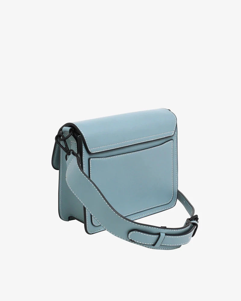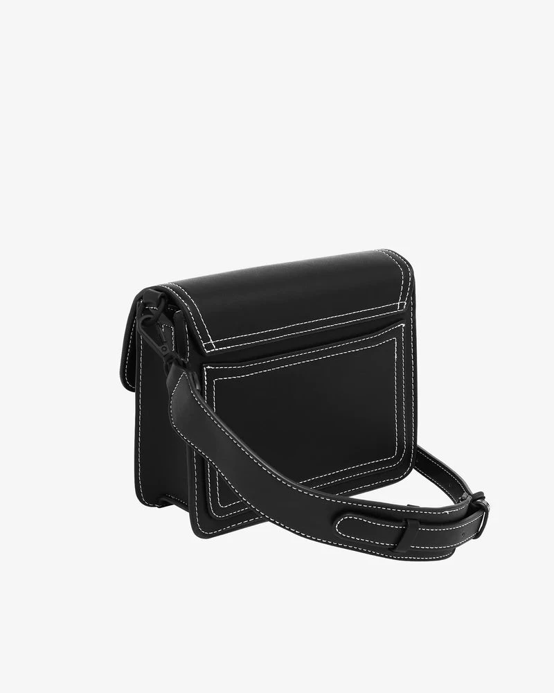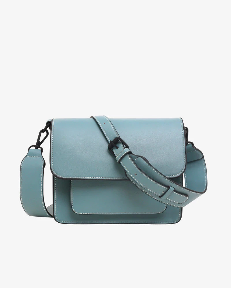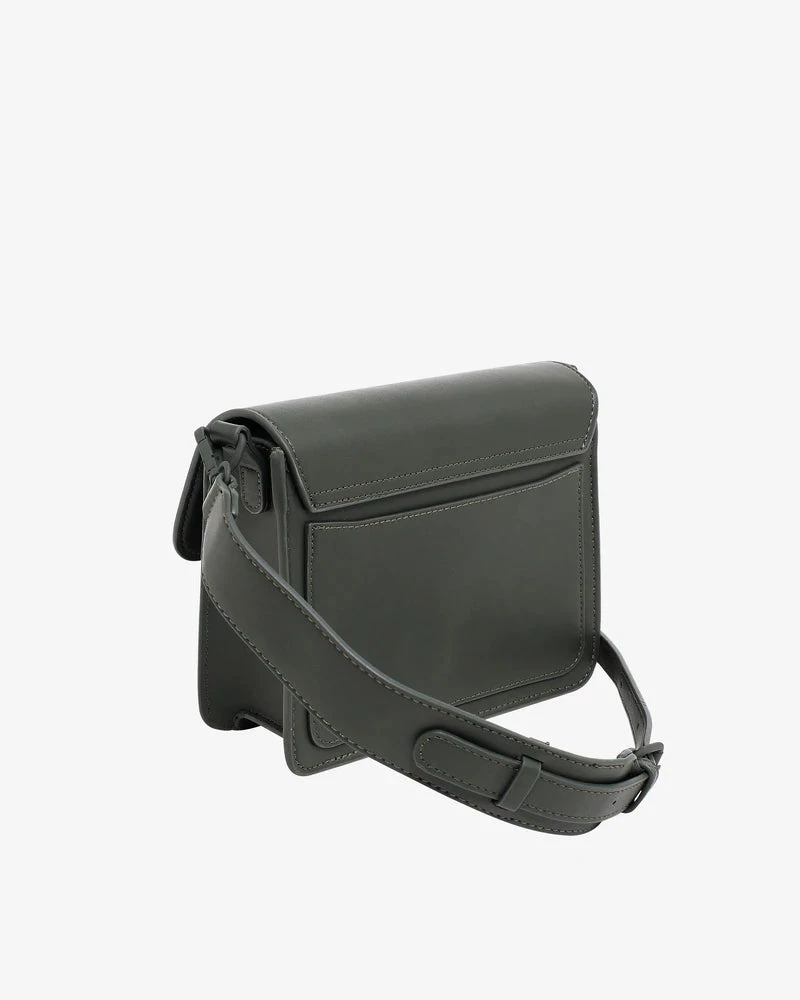 Crossbody bag made from partly recycled vegan material. The bag has a structured surface, one large compartment and an outer front pocket. It comes with an adjustable strap.