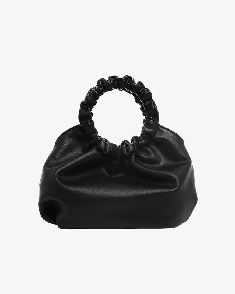 Handle bag made from partly recycled vegan material. The bag has a structured surface and contains one big compartment with a small inner pocket. The bag comes with a long strap, so it can be used as a crossbody.