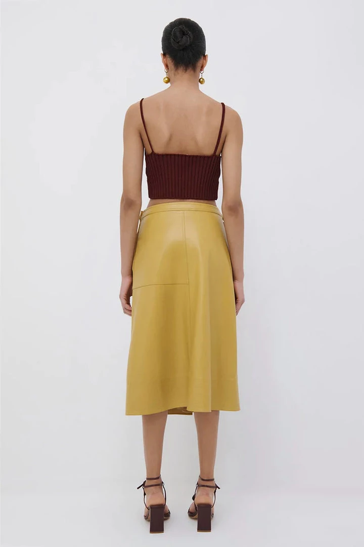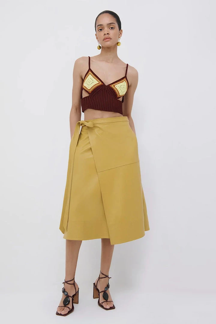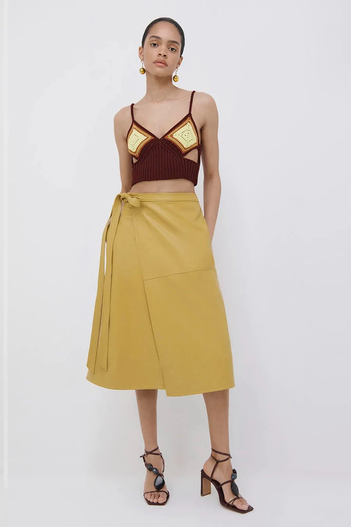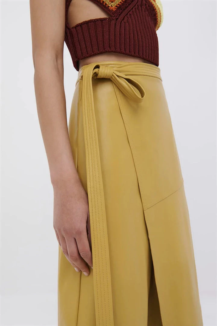 The Bia Vegan Leather Wrap Skirt in Honey.Â