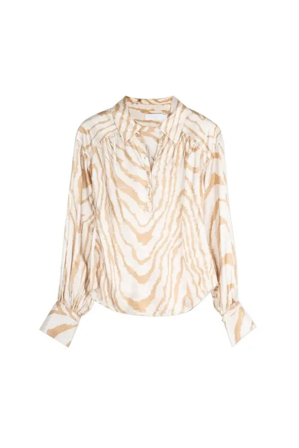 Jonathan Simkhai Halsey Moire Printed Washed Silk Puff Long Sleeve Blouse