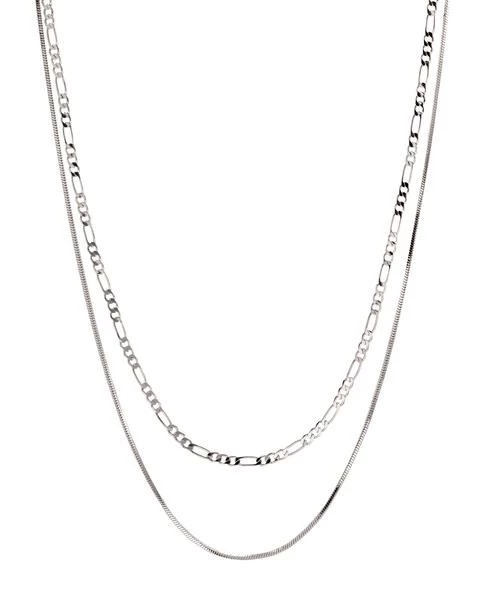- Dainty pre-layered figaro and herringbone chain necklace