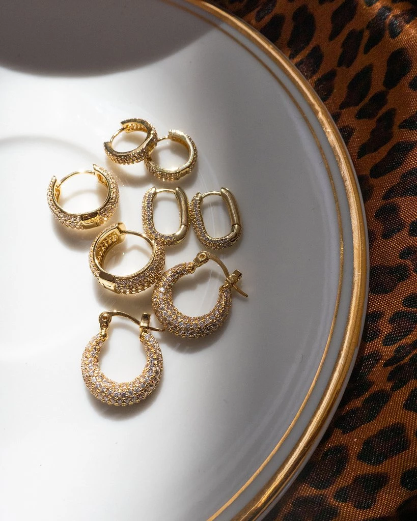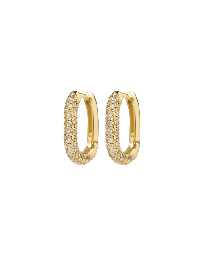 - Pair of simple pave chain-link shaped huggies that are perfect for everyday wear