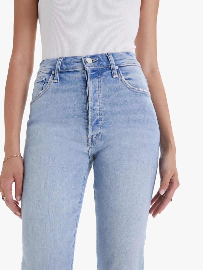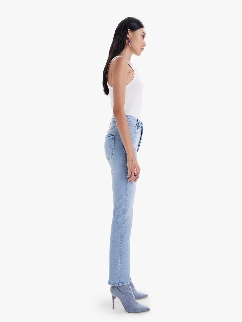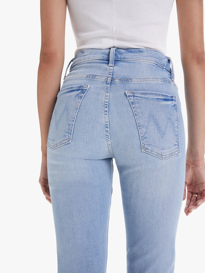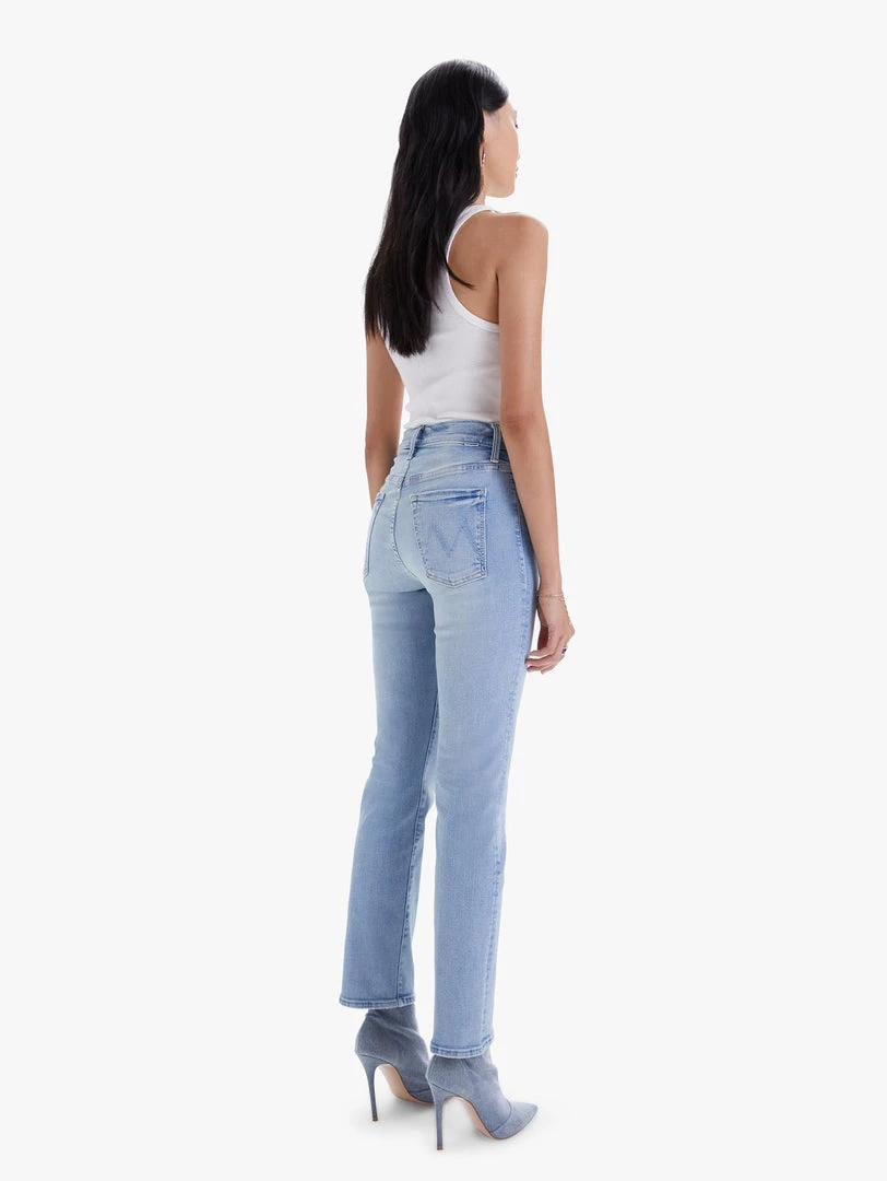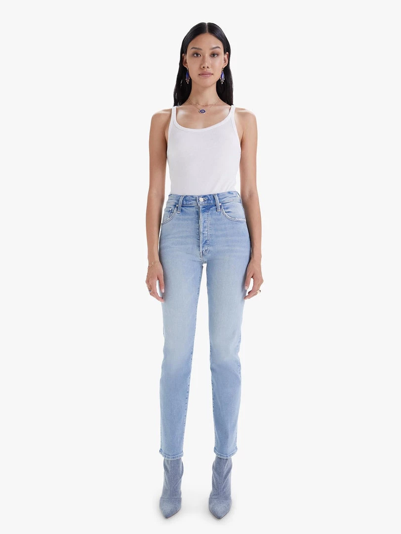 Inner galactic. This slim straight-leg was adopted from our men’s line and features a button fly and low-set back pockets with a high waist and a 29-inch inseam. Made from versatile stretch denim in a light wash.