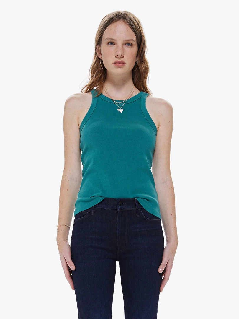 A versatile tank from MOVE IT, a collection of mix-and-match separates designed in a range of color harmonies. Made from a ribbed cotton blend with a touch of stretch, the teal tank features a slim fit and racer-style straps.