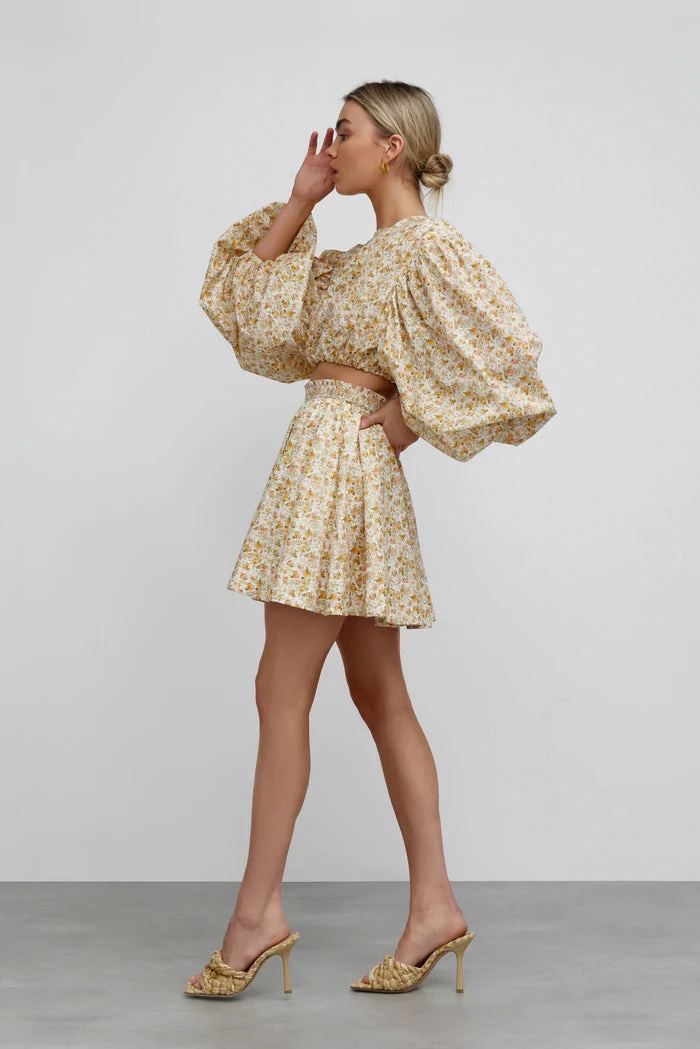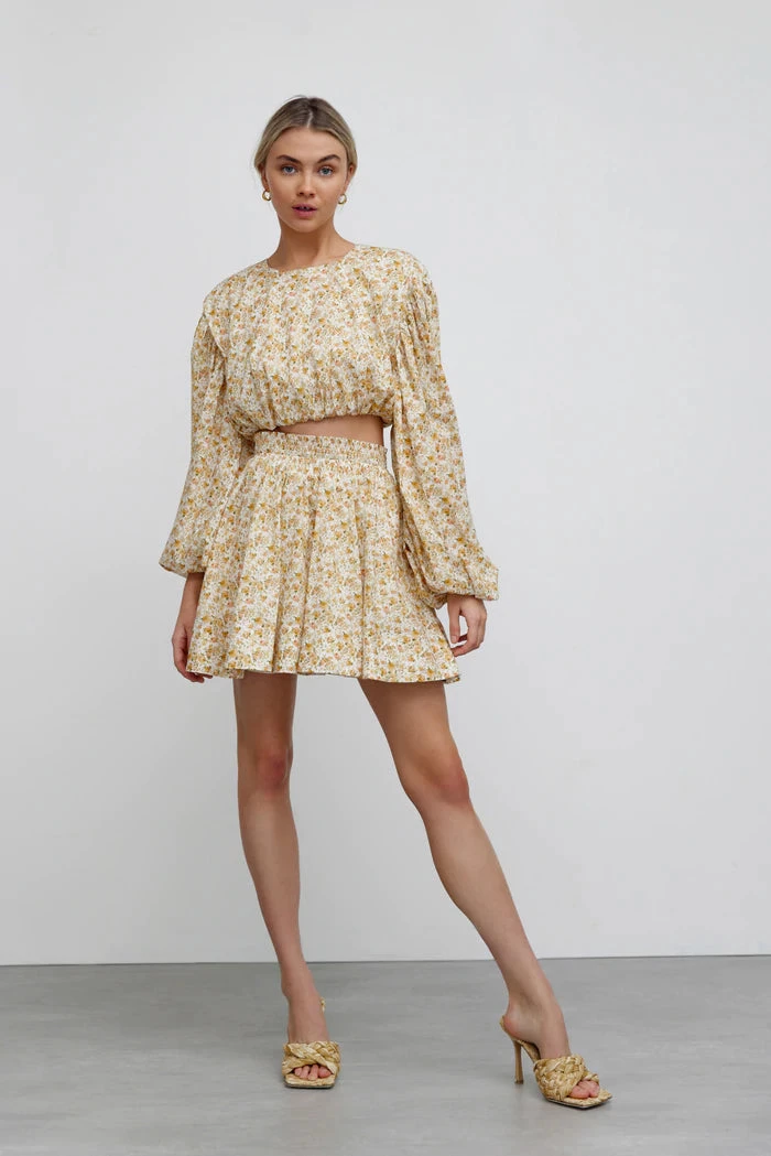 The Asta Skirt in Rosalie Print is designed to be a relaxed fit. Cinched at the waist with an elastic band, this style is relaxed toward the hem. Perfect for everyday styling, pair with the Asta Top in Rosalie Print for a complete look.