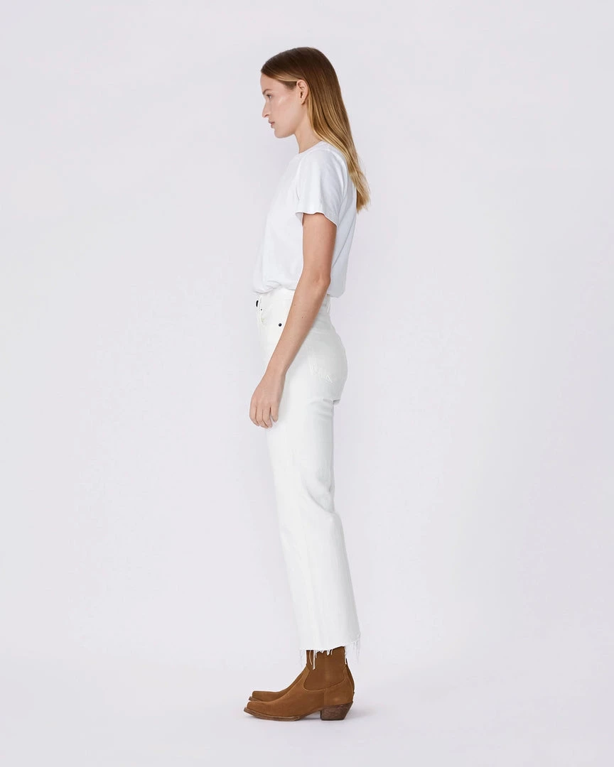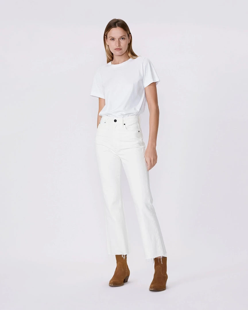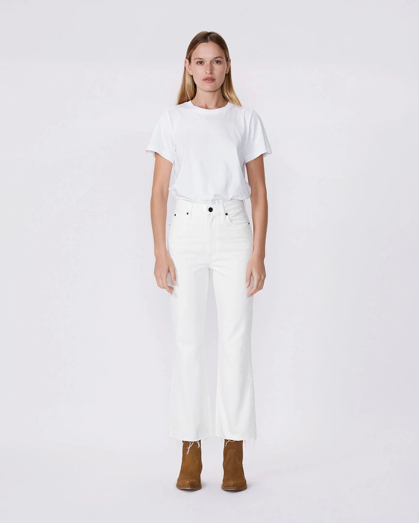 This playful flared style is accentuated by its cropped silhouette. Crafted from a premium pure cotton fabric, this hand-finished style features raw hem detail and accented with matte black hardware.