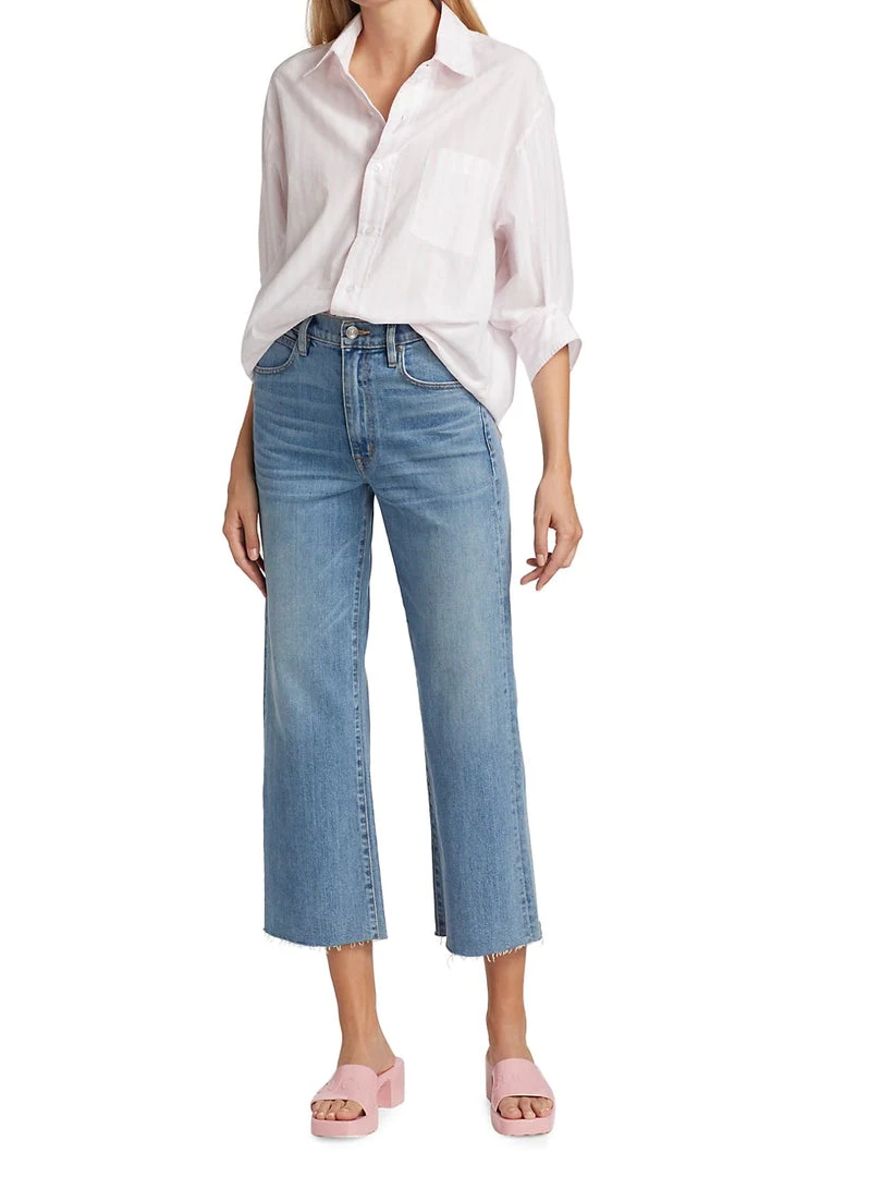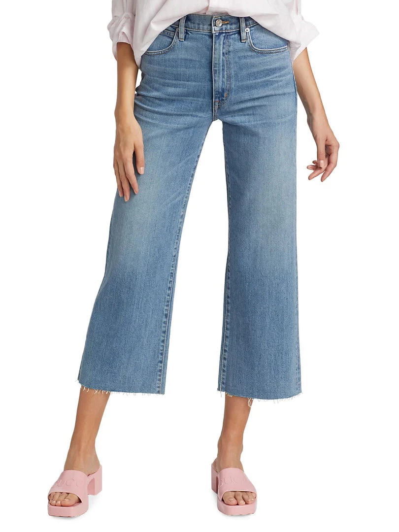 Finished with raw edges, SLVRLAKE’s Grace jeans are cut from stretch denim, featuring a high-rise waist and wide, crop legs.