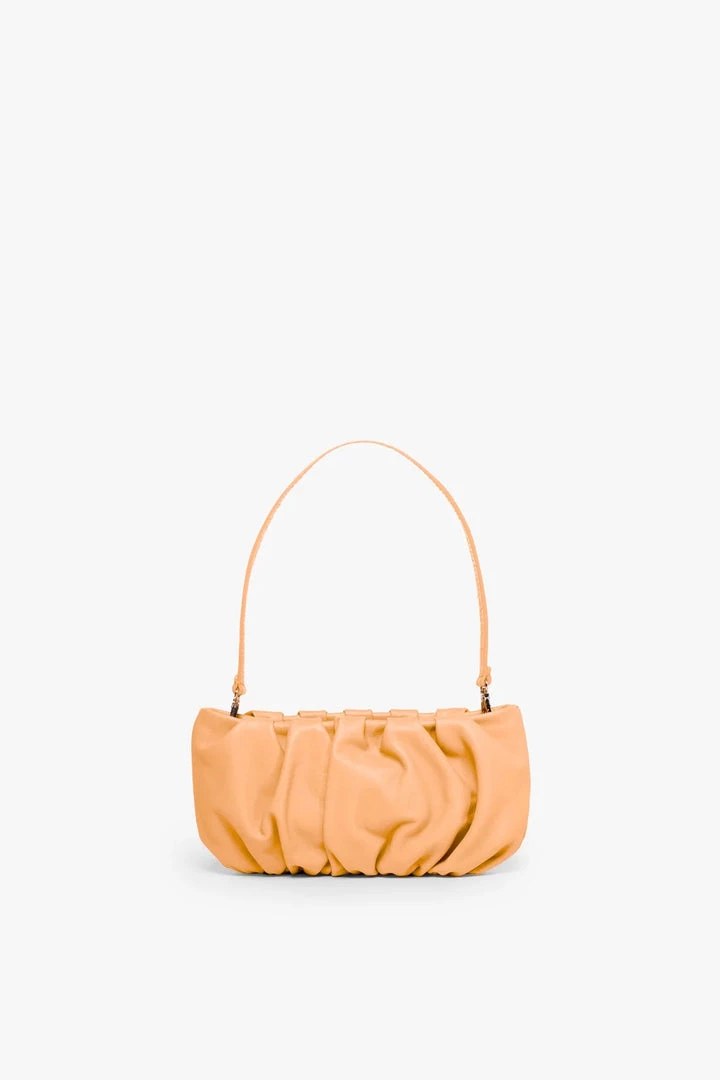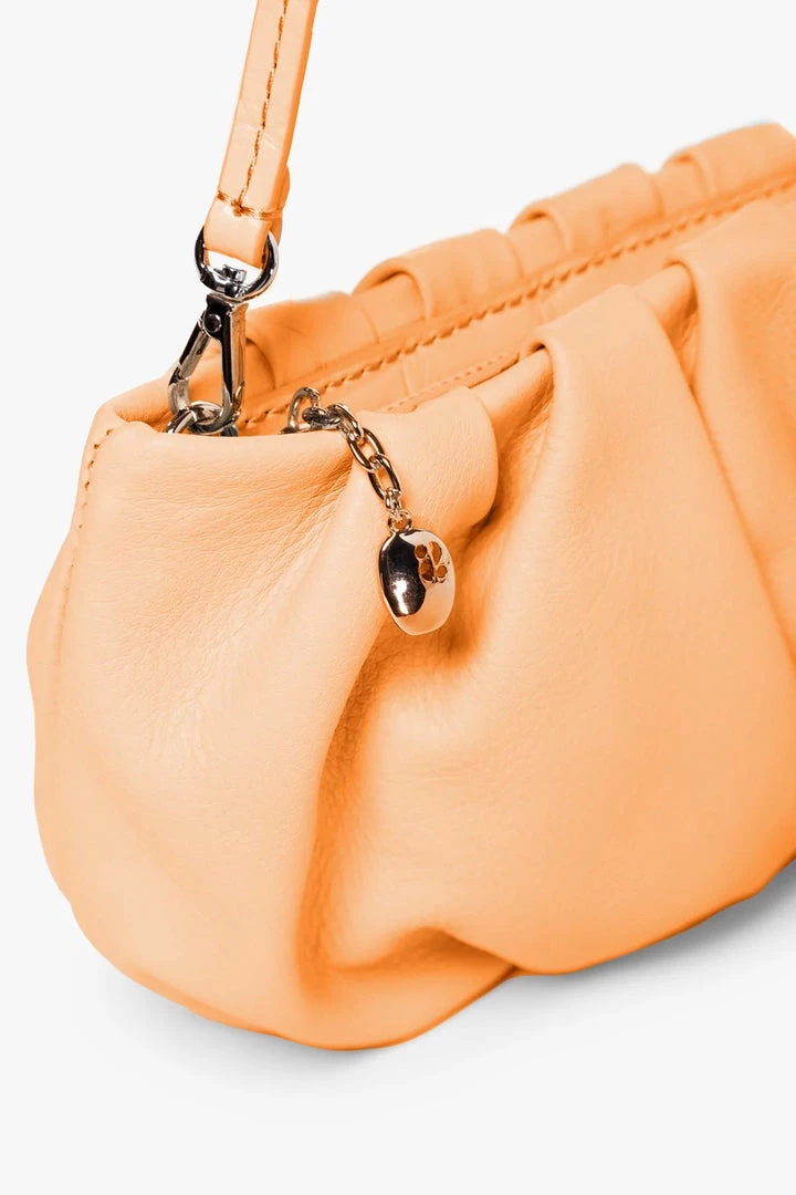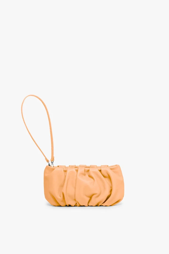 The Bean Bag is a small convertible clutch in soft leather. This style features a zipper closure, suede lining and removable shoulder strap.
