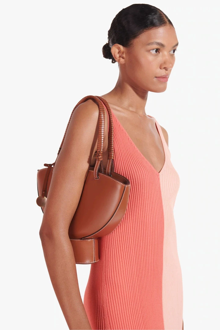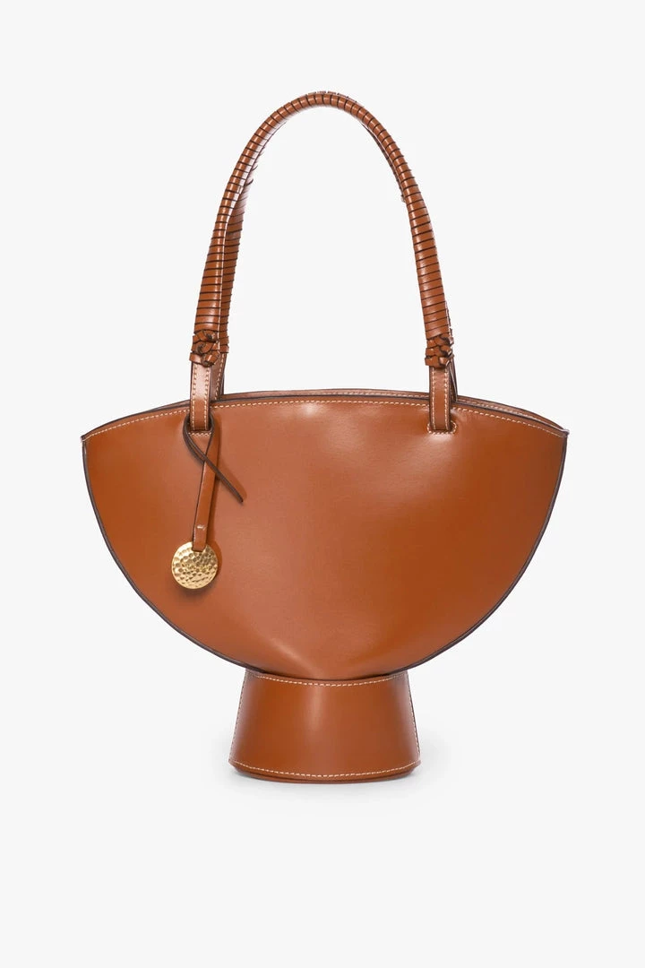 Introducing the Lantern Shoulder Bag, a sculptural leather bag with hammered medallion coin details and wrapped handle. This style features an interior removable zipper stash pouch that fits perfectly into the base.