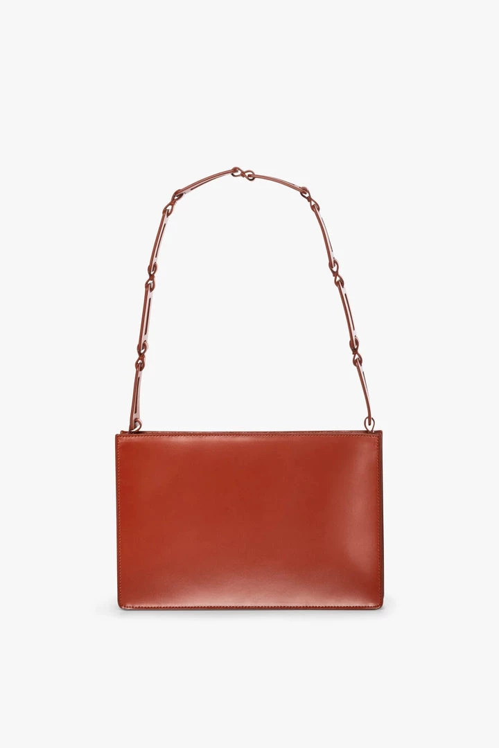 The Mina Shoulder Bag is a simple yet elegant bag with unique leather chain strap and zipper closure.
