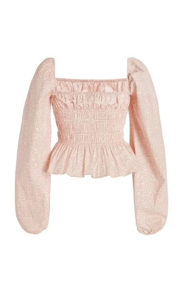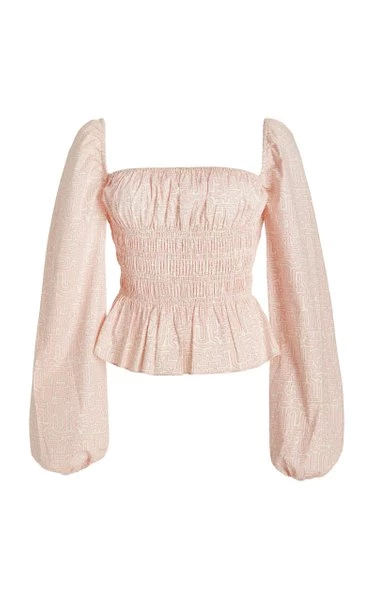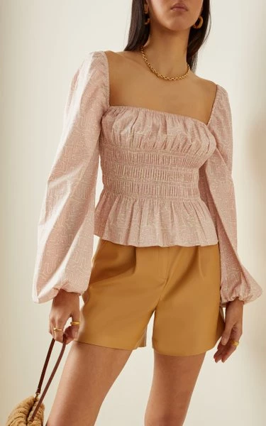 Staud’s ‘Jules’ top is made of a stretchy cotton-blend poplin that’s designed with voluminous long sleeves and a smocked bodice. Balance the voluminous silhouette with a tailored pencil skirt and sandals.
