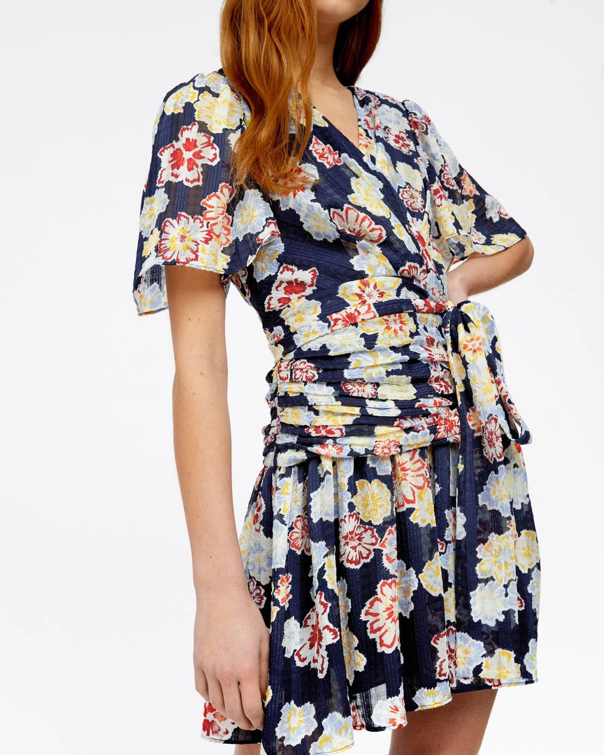 Designed in a sheer crinkle, Brynn is a faux-wrap mini in our new hand-drawn Chalk Floral print.