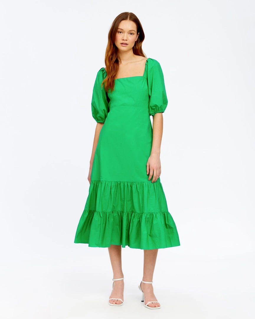 Designed in a sandwashed cotton for richness of texture, Cynthia has a lightweight ease with feminine touches throughout. Featuring a fitted bodice with a straight neckline and puff sleeves, in a vibrant kelly green, Cynthia is a versatile piece to carry you through the season.