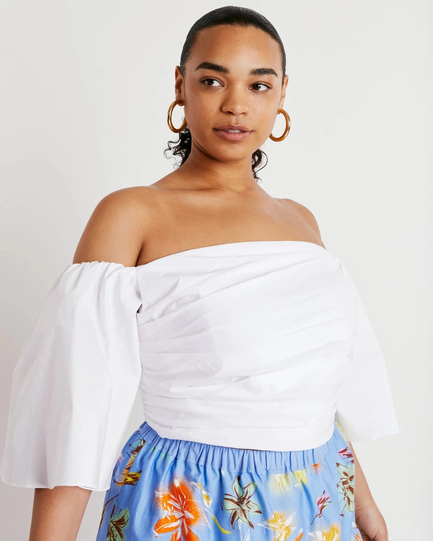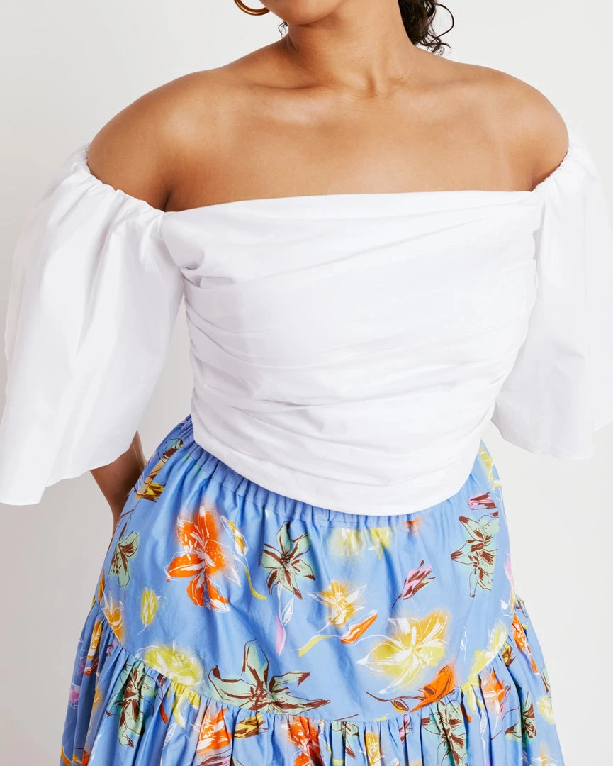 Designed in a lightweight cotton poplin, Sloane is our seasonal update to the best-selling Alondra top. Featuring set pleats along the fixed bodice and voluminous flutter sleeves, Sloane is a versatile solid, fresh for Summer.