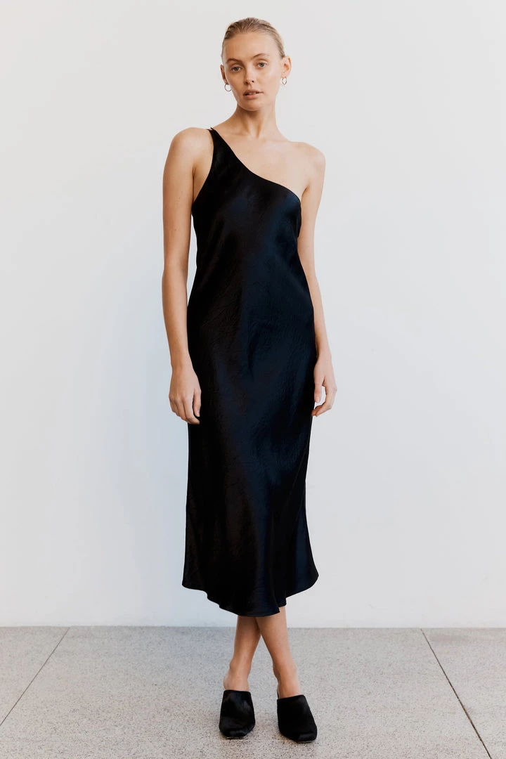 The Crush Bias One Shoulder Midi is your new statement piece this season. With delicate one shoulder neckline and back ties, the bias cut body in our premium crushed acetate falls softly through the body giving it a luxurious edge.