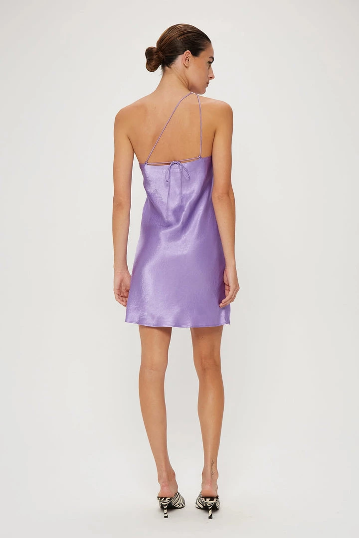 The Crush Bias One Shoulder Mini is a versatile wardrobe staple. This piece is crafted in a crushed finish, featuring a bias cut for a flattering fit. The elegant one-shoulder, asymmetrical neckline, is complemented by delicate straps and a tie-up back, making it the perfect piece to transition from day to night.