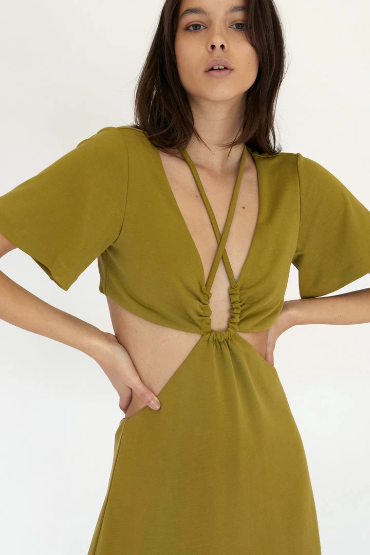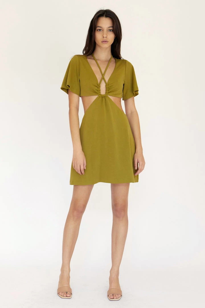 The Double Crossed Tee Dress is this seasons statement piece with everyday ease. Cut in premium modal with gather bra and cross-over straps, the Tee cut top is balanced by the waist cut out providing the Third Form edge.