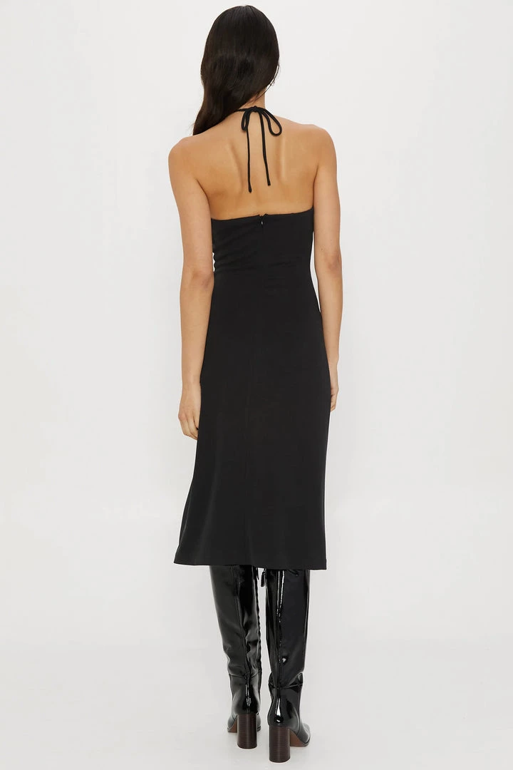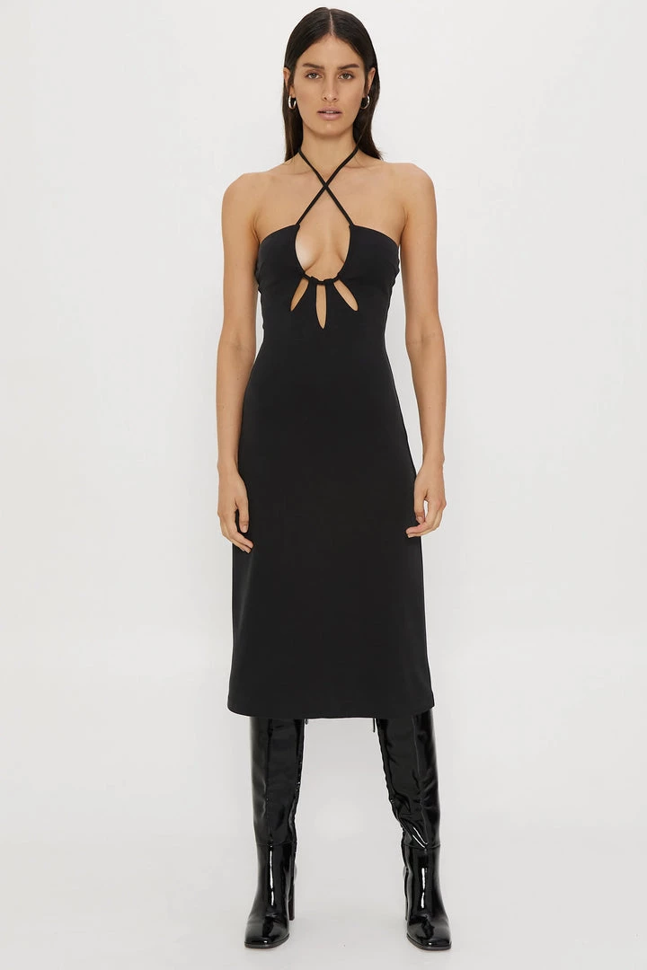 Turn heads in the Rip Tide Midi Slip Dress. Crafted in a luxurious, buttery modal with unique cutaways and halter neck, this piece is the definition of elegance with an edge. The classic slip dress shape is enhanced by darts at the waist – making for a flattering silhouette. Complete the look with a slip-on heel and paired back jewelry.