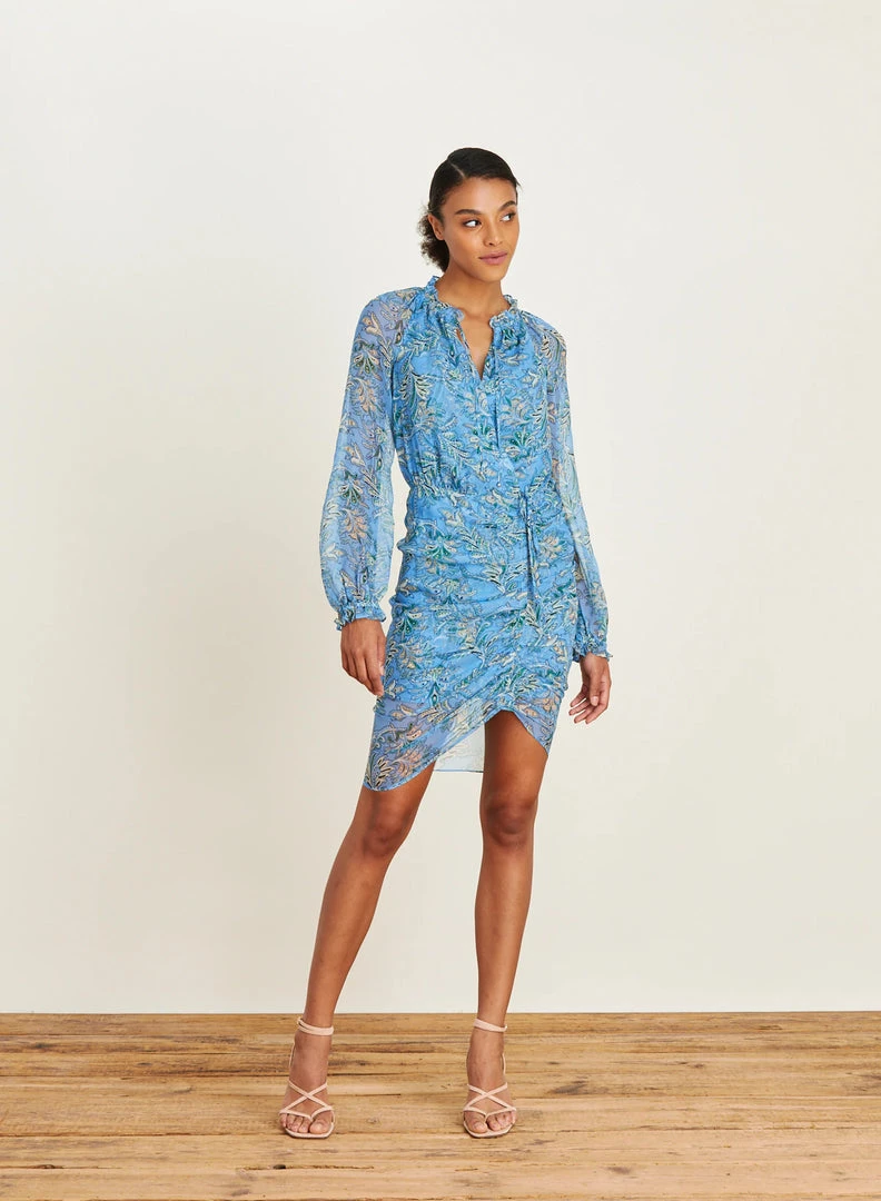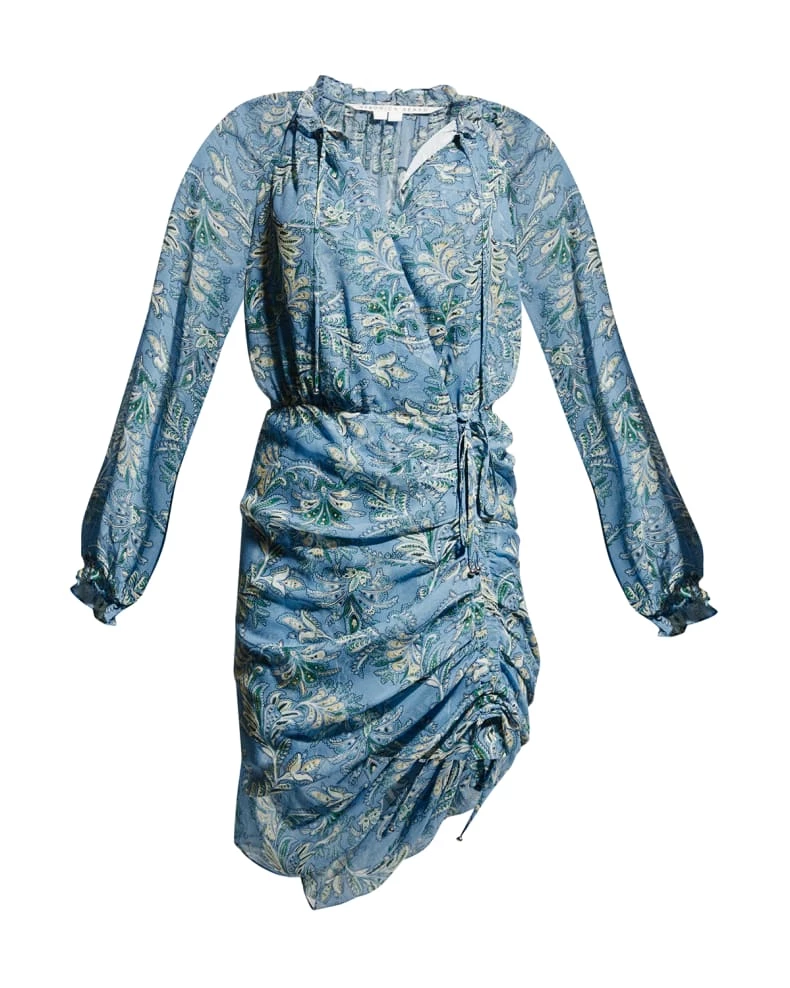 Veronica Beard “Becky” dress features drawstring-adjustable ruching and long sleeves.Â