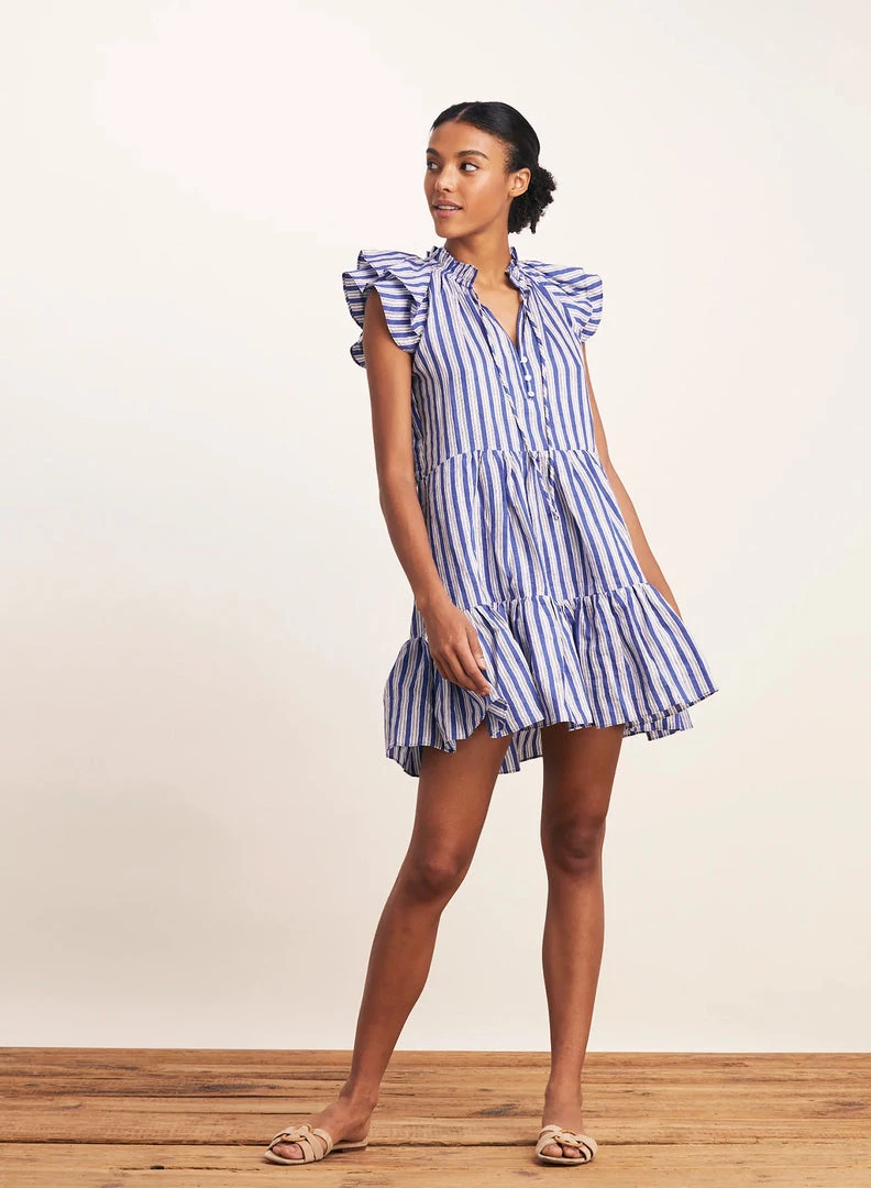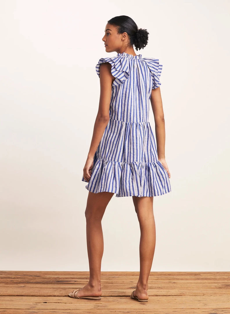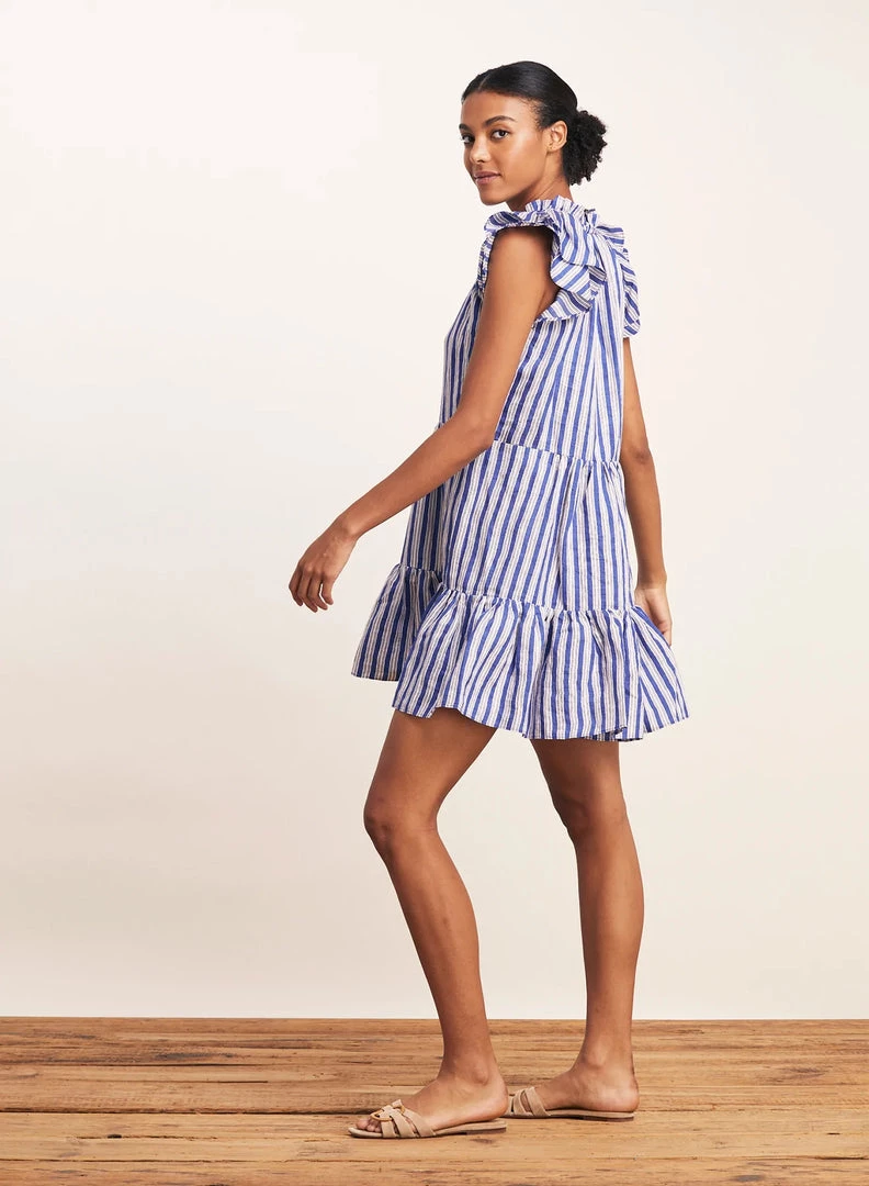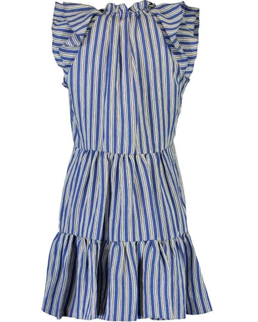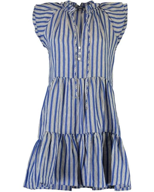 Veronica Beard’s ‘Zee’ dress is printed with blue, white and black stripes. Made from lightweight linen-blend, it has a ruffled neckline with adjustable ties and a tiered mini hem. Wear yours on warm days with sandals and a tote.